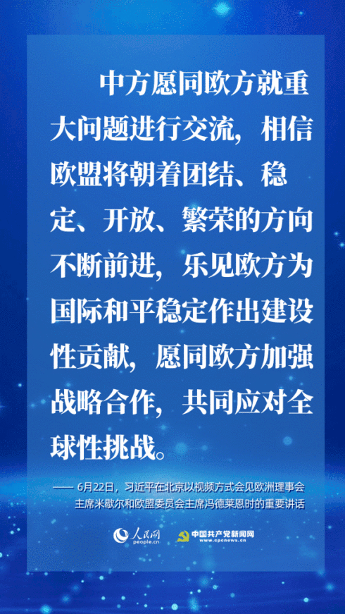 在此次會見中,習(xí)近平指出,新冠肺炎疫情發(fā)生以來,中國和歐盟相互支持、相互幫助。中方愿同歐方攜手努力,推動“后疫情時代”中歐關(guān)系更加穩(wěn)健成熟,邁向更高水平。