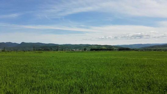 海蘭江畔,7200公頃綠油油的秧苗長勢喜人。