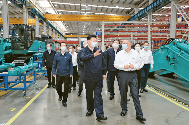 2020年9月16日至18日,中共中央總書(shū)記、國(guó)家主席、中央軍委主席習(xí)近平在湖南考察。這是17日下午,習(xí)近平在長(zhǎng)沙市山河智能裝備股份有限公司生產(chǎn)車(chē)間,察看裝備制造流程,了解技術(shù)研發(fā)、生產(chǎn)制造情況。 新華社記者 李學(xué)仁/攝
