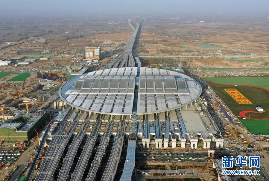 這是2020年12月23日拍攝的京雄城際鐵路雄安站(無(wú)人機(jī)照片)。新華社記者 牟宇 攝