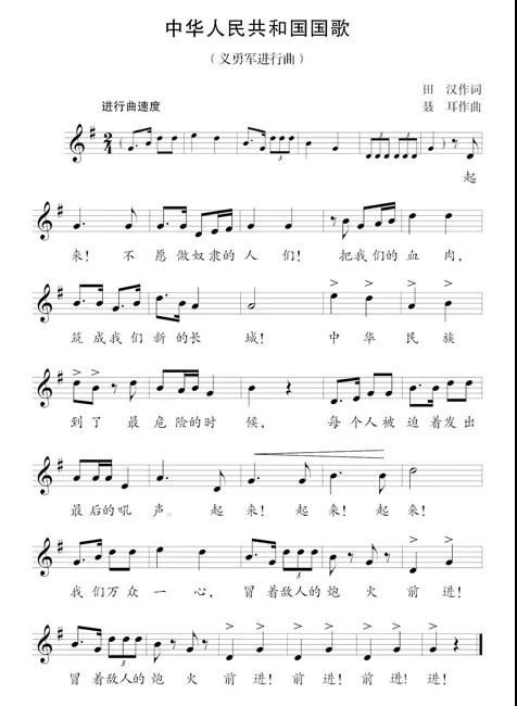 2004年3月14日,第十屆全國人大第二次會議通過了《中華人民共和國憲法修正案》,修正案第三十一條規(guī)定,憲法第一百三十六條增加一款,作為第二款:“中華人民共和國國歌是《義勇軍進行曲》?!?017年9月1日,《中華人民共和國國歌法》經(jīng)十二屆全國人大常委會第二十九次會議表決通過,于2017年10月1日起施行。
