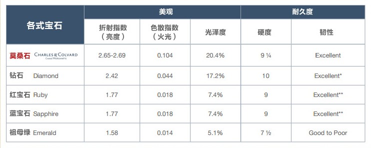 莫桑石與其他寶石的特征對比