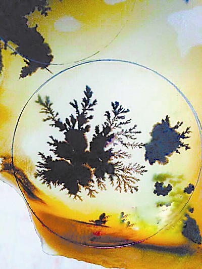 黃龍玉草花料豐富的色彩、美麗的圖案和深遠的意境,是怎么形成的呢?肖養(yǎng)杰告訴記者,初期大家都以為是真正的水草鉗入了礦物層,經(jīng)過億萬年的地質變化,與這些礦物融為了一體。直到后來,礦物學家介入后,業(yè)界才知道這是一個誤會。