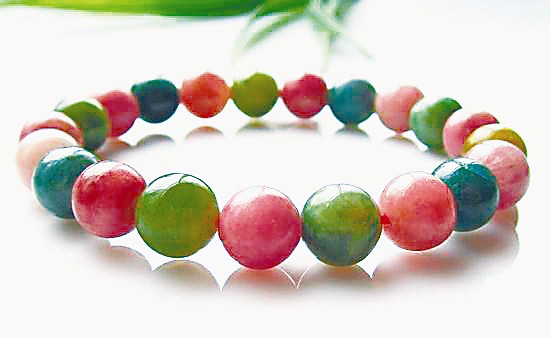 糖果碧璽一般指選擇紅藍綠三原色為主體的珠子搭配串成的手鏈。紅藍綠三色在碧璽中較為珍貴,串制糖果碧璽對珠子材料的要求很是苛刻,當然效果也更加鮮艷可愛,如同糖果般惹人喜歡,顏色活潑生動,可紅可綠,可藍可紫,仿佛童年糖果罐中的糖果般鮮艷動人。同時,糖果珠鏈的普適人群范圍更加廣泛,不論男女老少均可佩戴。