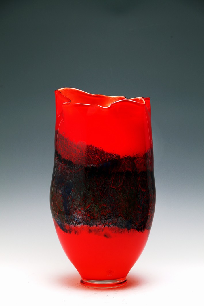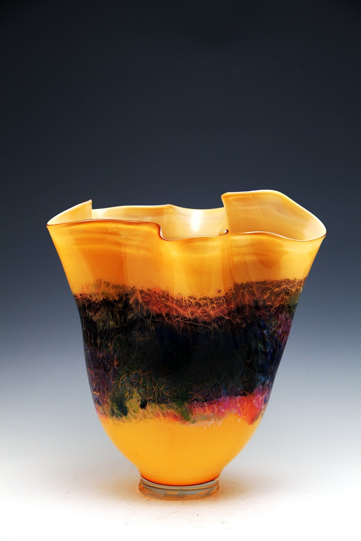 琉璃熱成形,是一種技與藝高度融合的藝術(shù)。石英砂在1400攝氏度下融化,出爐后四五分鐘之內(nèi)便凝固,藝術(shù)家就要在這么短的時(shí)間之內(nèi),為頑石賦予生命,把流動(dòng)的色彩定格成云裳霓影。