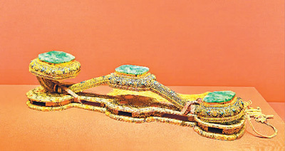 清銅鎏金累絲嵌翡翠三鑲?cè)缫?劉憲國(guó)攝