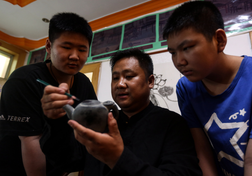 王濤正在講解勾線要領(lǐng)。王耀 攝