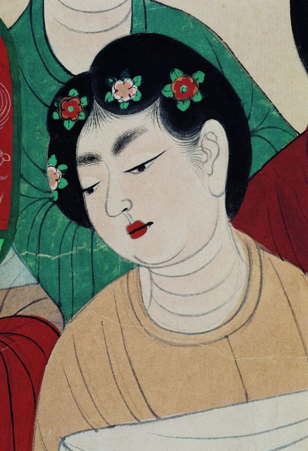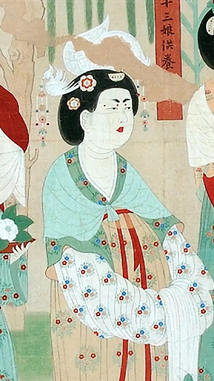 都督夫人禮佛圖局部之戴花的女眷(臨摹品)莫高窟第130窟盛唐