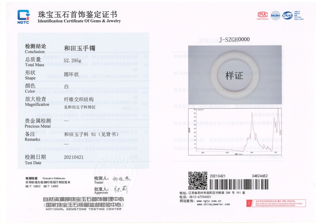 ▲珠寶國(guó)檢(NGTC)和田玉子料鑒定證書(shū)樣證
