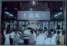 老廟品牌發(fā)源并成長于上海老城隍廟地區(qū),“老廟”的淵源要追溯到百年前。當(dāng)時,上海老城隍廟南面建立起了“金業(yè)公所”,諸多的銀樓、珠寶店都發(fā)祥并成長于此。當(dāng)年的“費文元銀樓”是緊挨著城隍廟廟宇旁,打著“老廟赤金”、“老廟白金”、“老廟寶石”旗號的專業(yè)金號,具有鮮明的品牌經(jīng)營特色。隨著歷史的變革,新中國成立后黃金珠寶的交易一直受政府管控。直到1981年,經(jīng)原上海市南市區(qū)人民政府批準(zhǔn),將上海市百貨公司“五七工場”的城隍廟廟宇大殿開設(shè)“上海老城隍廟工藝品商店”。