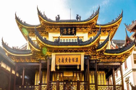 1982年,上海豫園商場向原國家商業(yè)部申請黃金飾品買賣的許可,同年8月,中國人民銀行頒布了《關(guān)于在國內(nèi)恢復(fù)經(jīng)營黃金飾品的通知》,豫園商場成了中國零售商業(yè)的第一批黃金飾品零售商,第一個黃金柜就設(shè)立在老城隍廟內(nèi)——老廟黃金再一次得到了重生。上海銀樓業(yè)經(jīng)營也開始春回大地。有著歷史文化傳承的“老廟”赤金終于獲得重生,在“老城隍廟大殿”內(nèi)設(shè)立了兩節(jié)柜臺,從重新獲得經(jīng)營黃金飾品許可之初,即延續(xù)了當(dāng)年費文元銀樓所經(jīng)營的“老廟”赤金白金的特色產(chǎn)品名、文化、服務(wù)和技藝,銷售著“老廟黃金”。從此,老廟黃金便駐足于上海老城隍廟這塊福地上蓬勃發(fā)展。