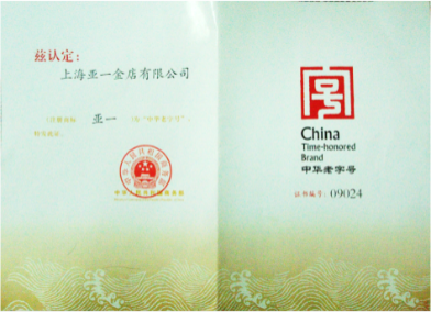 2006年,亞一獲得商務(wù)部認(rèn)定的“中華老字號(hào)”。