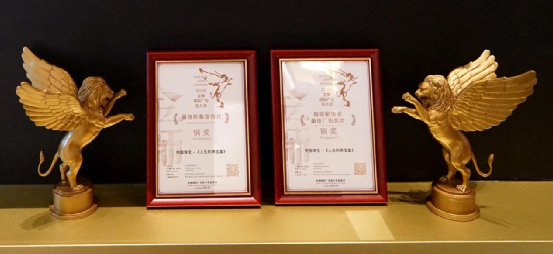 2020年7月21日,“中國珠寶”品牌廣告片《人生的珠寶盒》榮獲2020金獅國際廣告影片“最佳形象宣傳片”銅獎、“服裝配飾類最佳廣告影片”銅獎兩大獎項。廣告片中,“中國珠寶”品牌以一個具有特殊意義的珠寶盒為線索,講述母親與女兒之間的溫情故事,串聯(lián)起三代人愛的延續(xù),以及時代文化的傳承,以此片表達(dá)“中國珠寶”品牌對中國人特有的親情文化和傳承文化的理解。