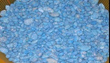 安徽綠松石中除馬鞍山外,還有一個重要的產(chǎn)區(qū)就在樅陽、廬江、無為三縣交界的銅礦區(qū)內(nèi),銅陵小籽就是產(chǎn)自于此。這一區(qū)域處在管理嚴(yán)格的銅礦開采區(qū)里,現(xiàn)開采的礦口不多,但品質(zhì)極高,儲量豐富。銅陵產(chǎn)的高藍(lán)小籽料(銅陵小籽),雖然顆粒小,但顏色湛藍(lán),硬度極高,是安徽高品質(zhì)綠松石的代表。