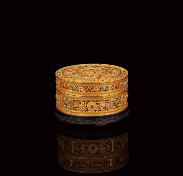 作品名稱:足金五福捧壽花絲擺盒選送單位:北京老鋪黃金文化發(fā)展有限公司