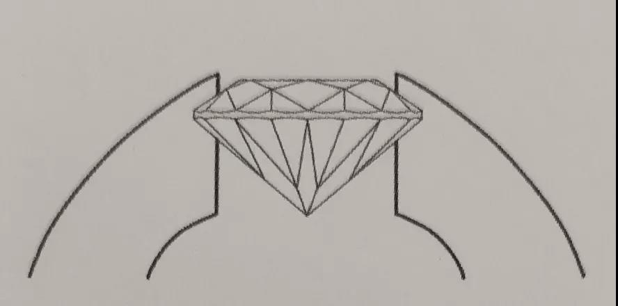 卡鑲。這種鑲嵌方式剛剛被發(fā)明時(shí),也稱為“金屬張力鑲法”。利用金屬的張力固定寶石的腰部或者腰部與底尖的部分,是較為新潮的款式,卡鑲比爪鑲更能展示寶石的全貌。
