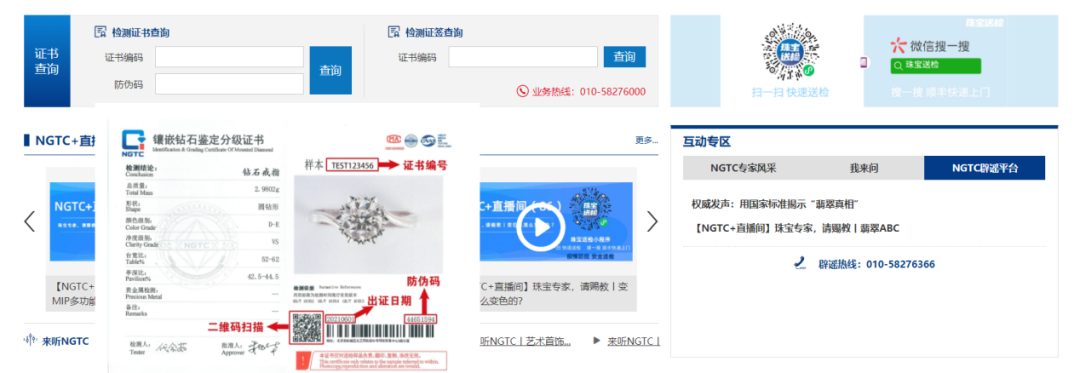 珠寶國檢(NGTC)官網(wǎng)(www.51bengfa.com)證書查詢專欄截圖