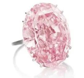 “Pink Star”,重59.6克拉,艷彩粉色,凈度IF,2017年4月在蘇富比日內(nèi)瓦拍賣會上,周大福以7100萬美元的價格拍下,并更名為“周大福粉鉆“ (CTF Pink Star),刷新了全球鉆石及寶石的拍賣紀(jì)錄,成為目前全球最昂貴的珠寶