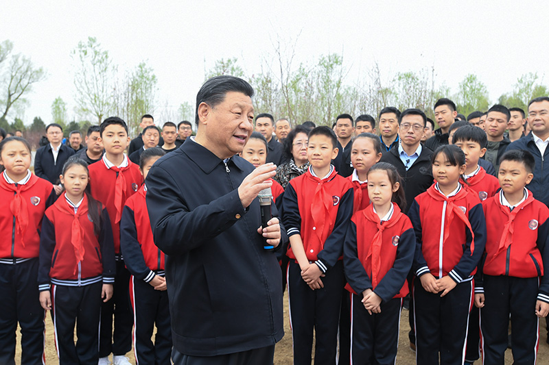 習(xí)近平強(qiáng)調(diào),美麗中國建設(shè)離不開每一個人的努力。美麗中國就是要使祖國大好河山都健康,使中華民族世世代代都健康。要深入開展好全民義務(wù)植樹,堅持全國動員、全民動手、全社會共同參與,加強(qiáng)組織發(fā)動,創(chuàng)新工作機(jī)制,強(qiáng)化宣傳教育,進(jìn)一步激發(fā)全社會參與義務(wù)植樹的積極性和主動性。廣大黨員、干部要帶頭履行植樹義務(wù),踐行綠色低碳生活方式,呵護(hù)好我們的地球家園,守護(hù)好祖國的綠水青山,讓人民過上高品質(zhì)生活。