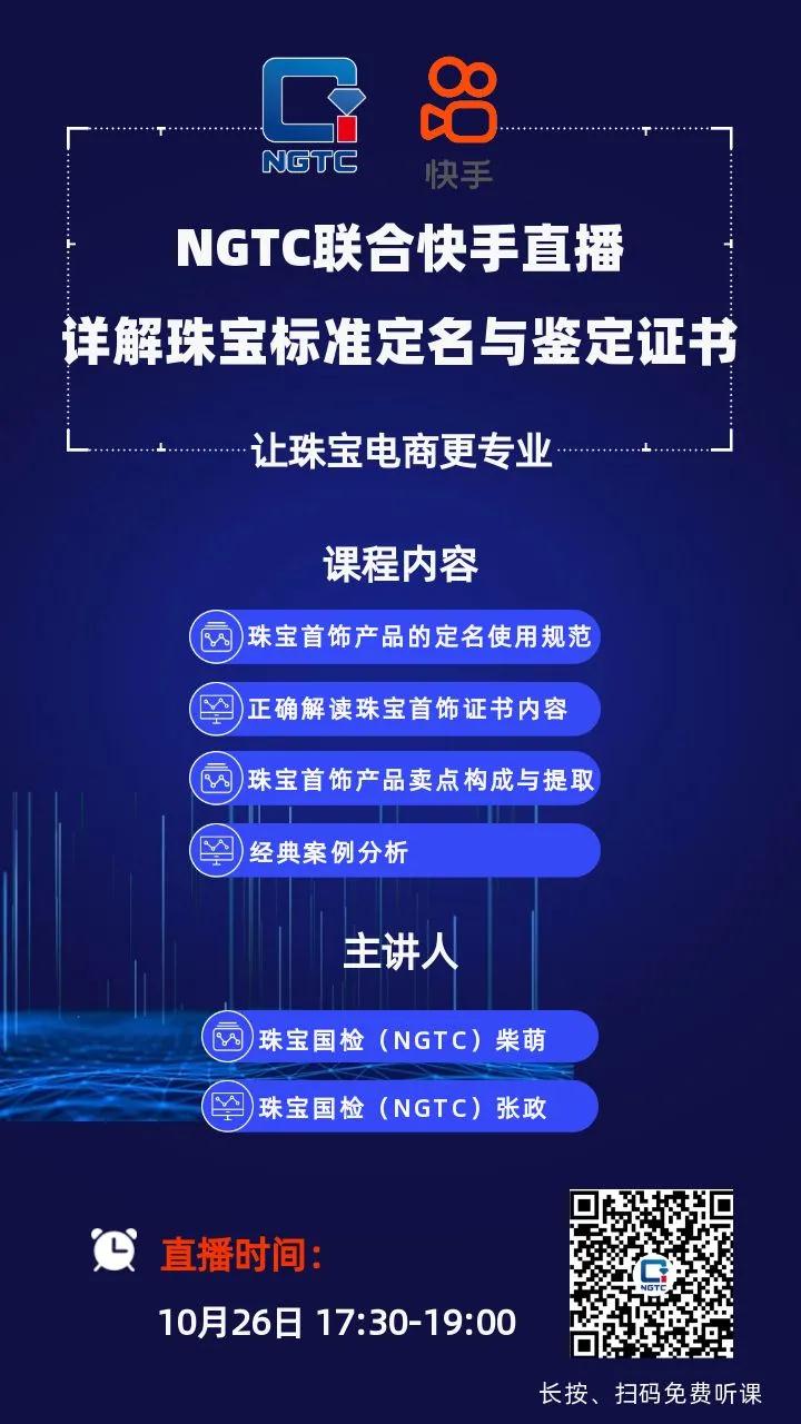 那就不能錯過10月26日(下周一)17:30—19:00,珠寶國檢(NGTC)聯(lián)合快手開展的主題網(wǎng)絡(luò)培訓(xùn)直播,詳解珠寶標(biāo)準(zhǔn)定名與鑒定證書,讓珠寶電商更專業(yè)。屆時珠寶國檢(NGTC)國檢珠寶培訓(xùn)中心商學(xué)院院長柴萌、珠寶國檢(NGTC)北京實驗室張政將直擊珠寶直播賣貨痛點,教你如何“反套路真營銷”!
