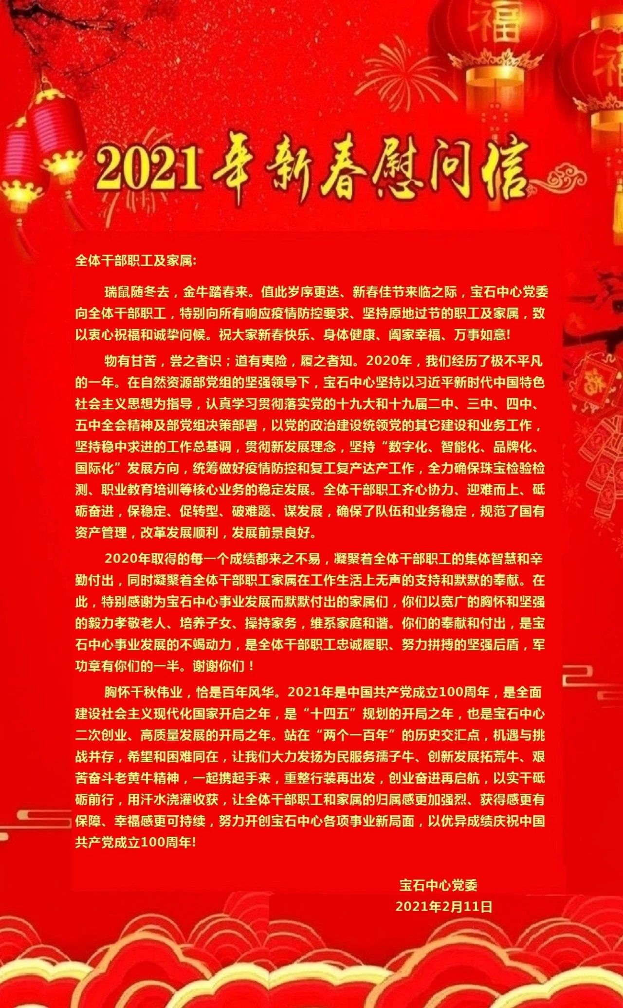 2021年新春慰問信