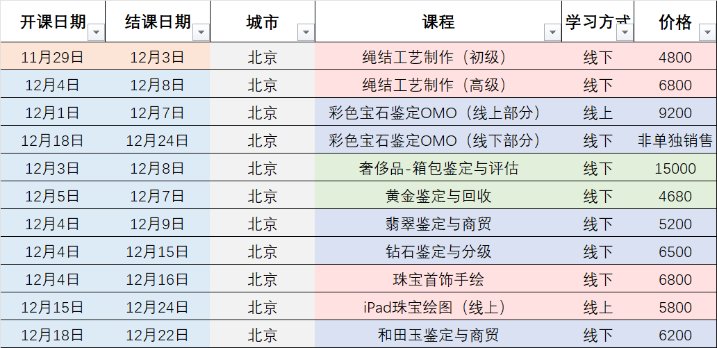 【開(kāi)課計(jì)劃】2023年12月全國(guó)課程計(jì)劃