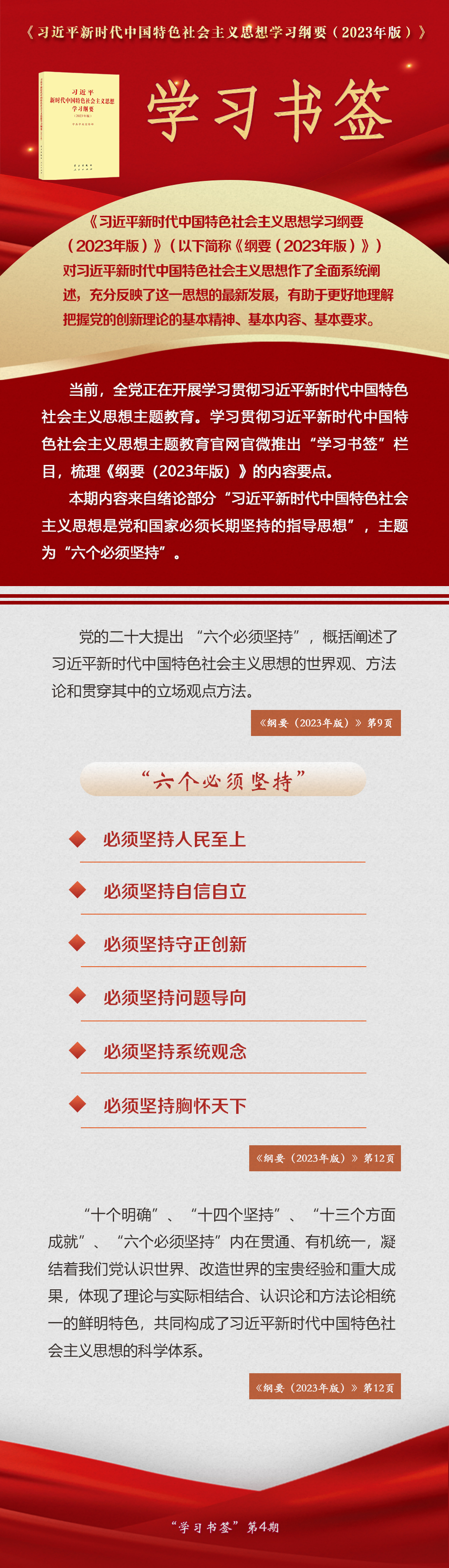 《習近平新時代中國特色社會主義思想學習綱要(2023年版)》 學習書簽丨“六個必須堅持”