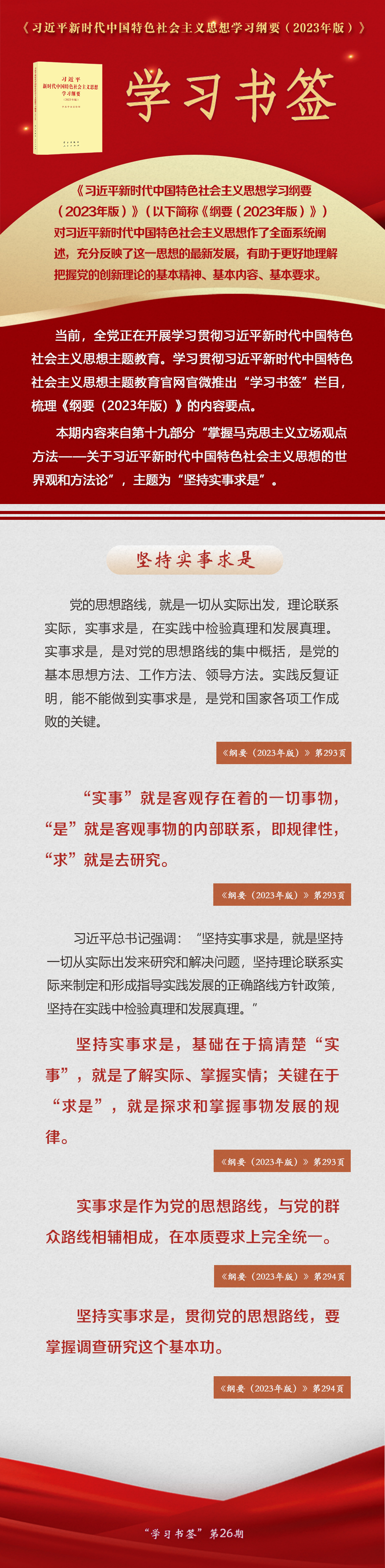 《習(xí)近平新時(shí)代中國(guó)特色社會(huì)主義思想學(xué)習(xí)綱要(2023年版)》 學(xué)習(xí)書(shū)簽丨堅(jiān)持實(shí)事求是