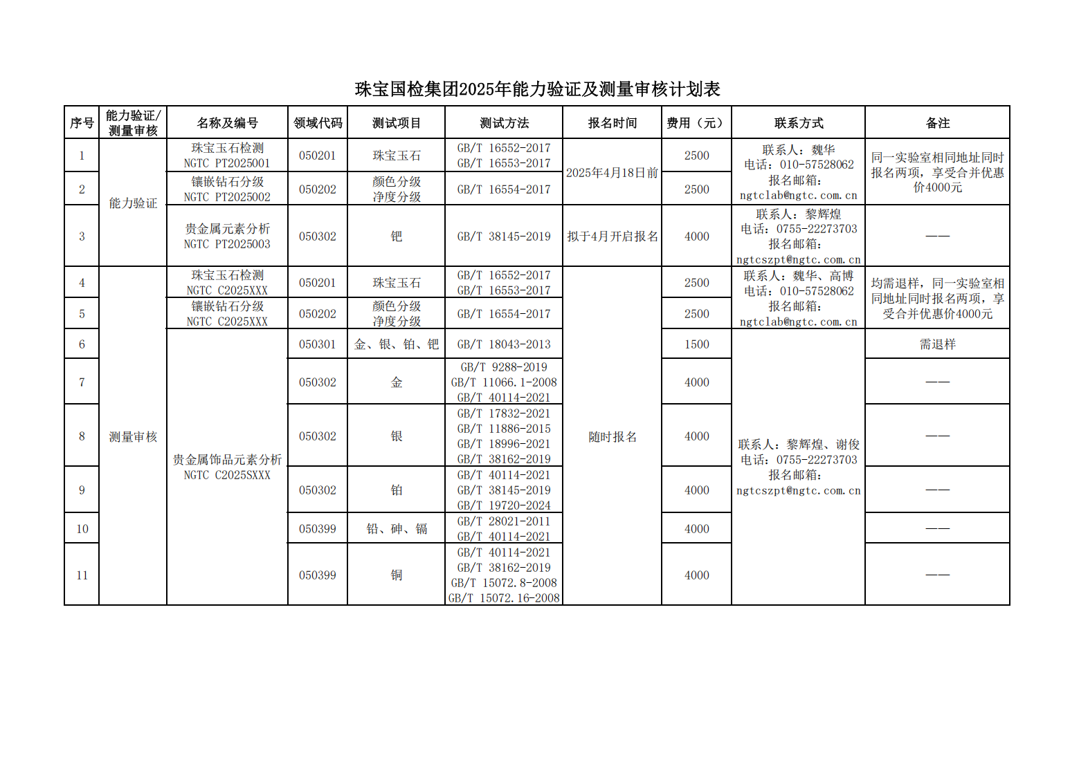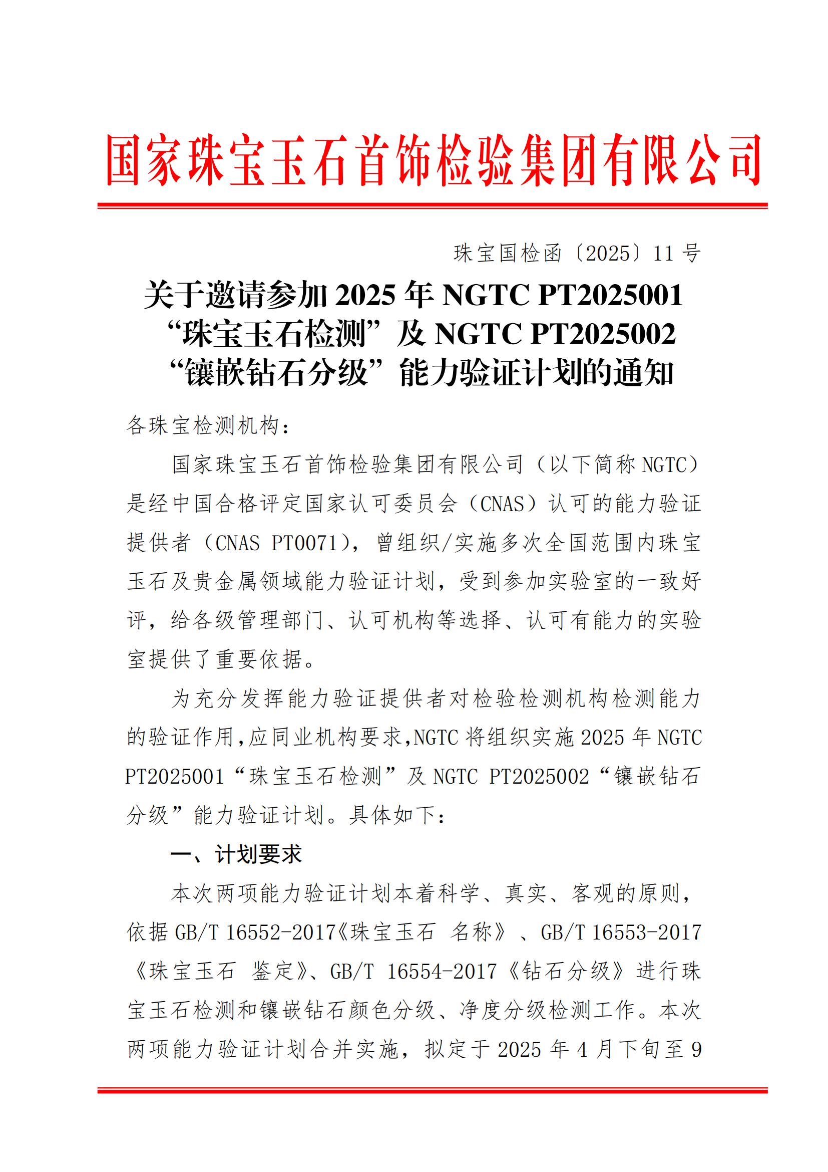 關(guān)于邀請參加 2025 年 NGTC PT2025001“珠寶玉石檢測”及 NGTC PT2025002“鑲嵌鉆石分級”能力驗證計劃的通知